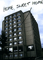 Our wrestlers are currently relaxing in their favorite spot, the place they always hang out at whenever they drop into Plattsburgh - the sumptous PWF HQ located in the exclusive high-rise apartment block known fondly as Hood Hall! (see the room circled and fondly called 'home sweet home' by our loyal wrestlers) |